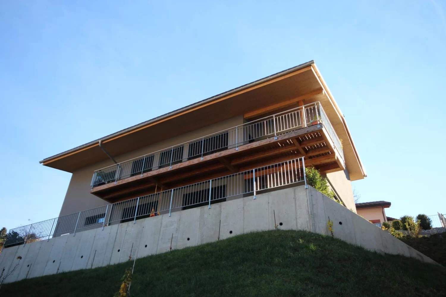 Durch die kurze Bauzeit und die hohe Vorfertigung ist der Holzbau gegenüber anderen Bauweisen klar im Vorteil.