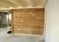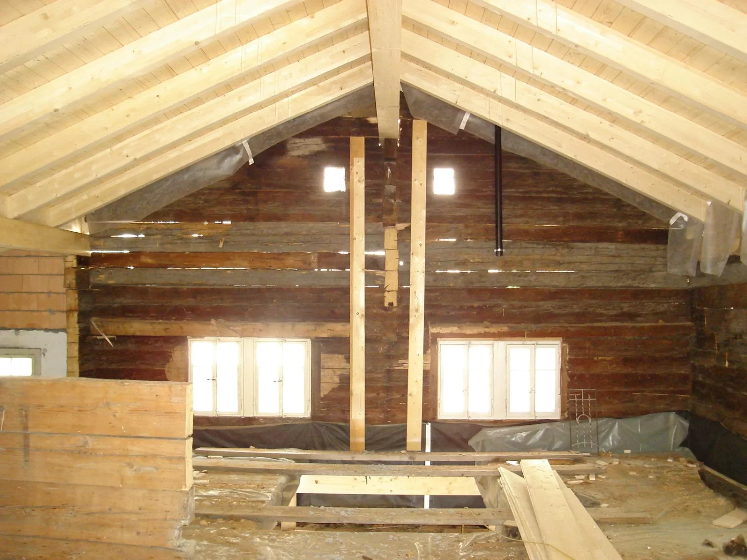 A single-family house was created from a barn. The clapboard façade was removed and the brick below treated. The entire interior was hollowed out and renovated.