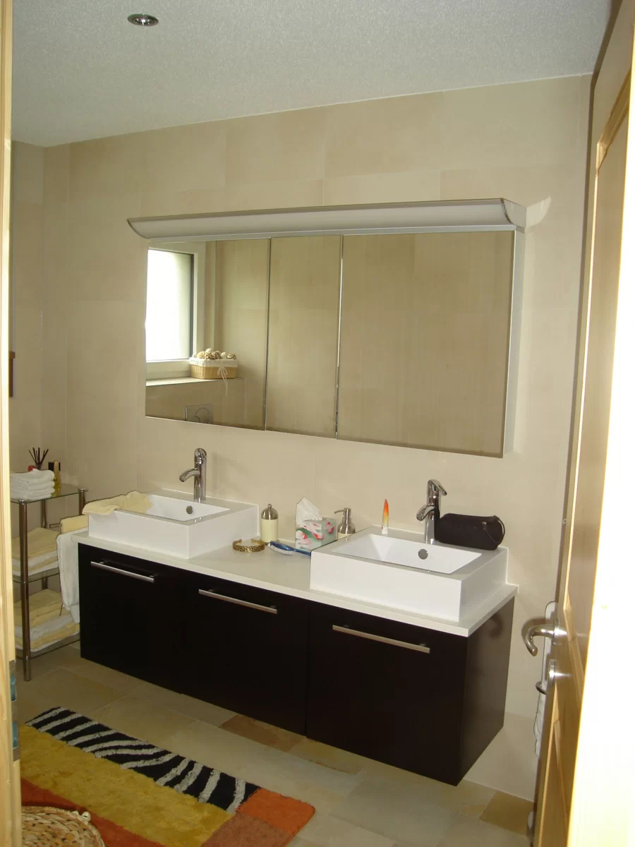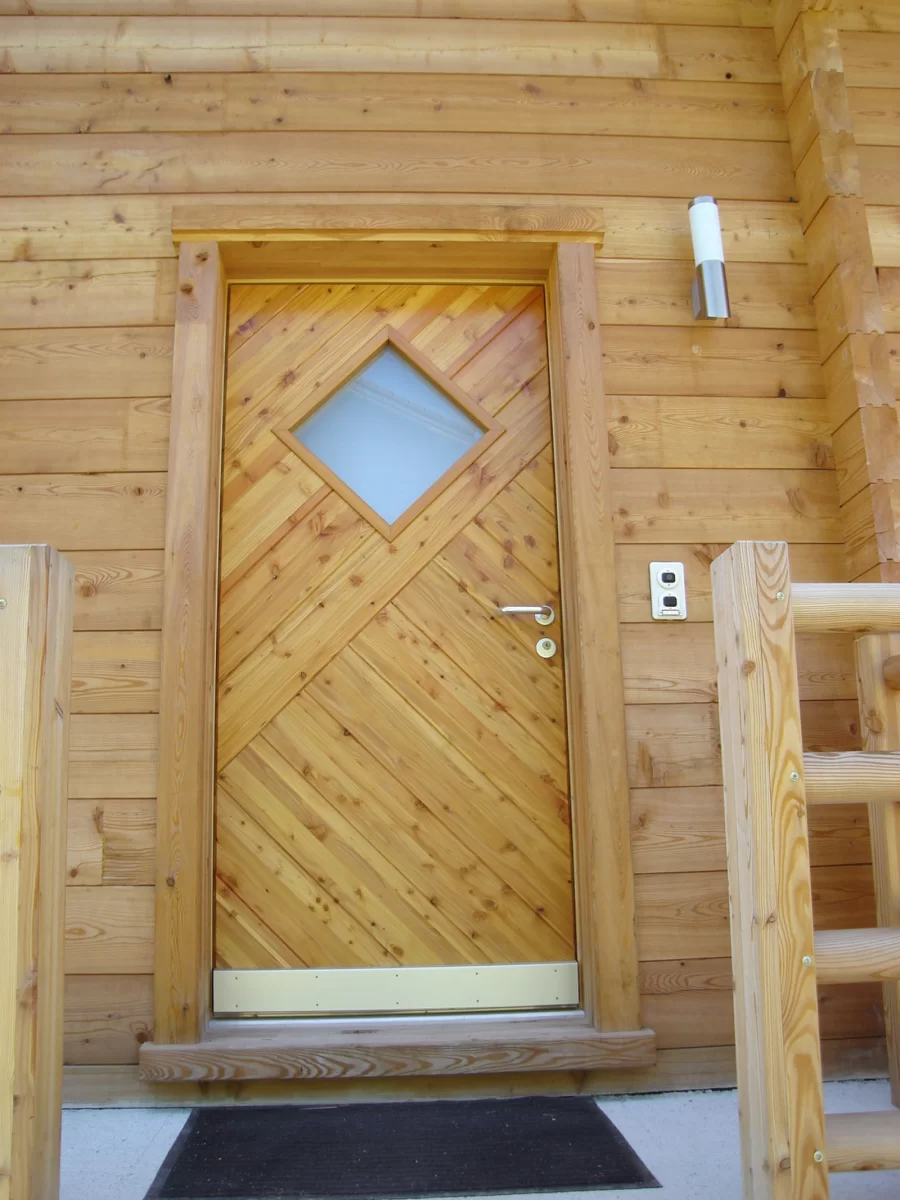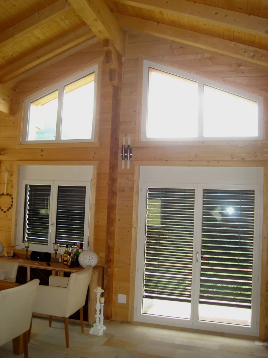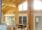 Log house with basement in Bürchen. The extensive window surface ensures a high degree of natural light. The basement was lined with façade brick.