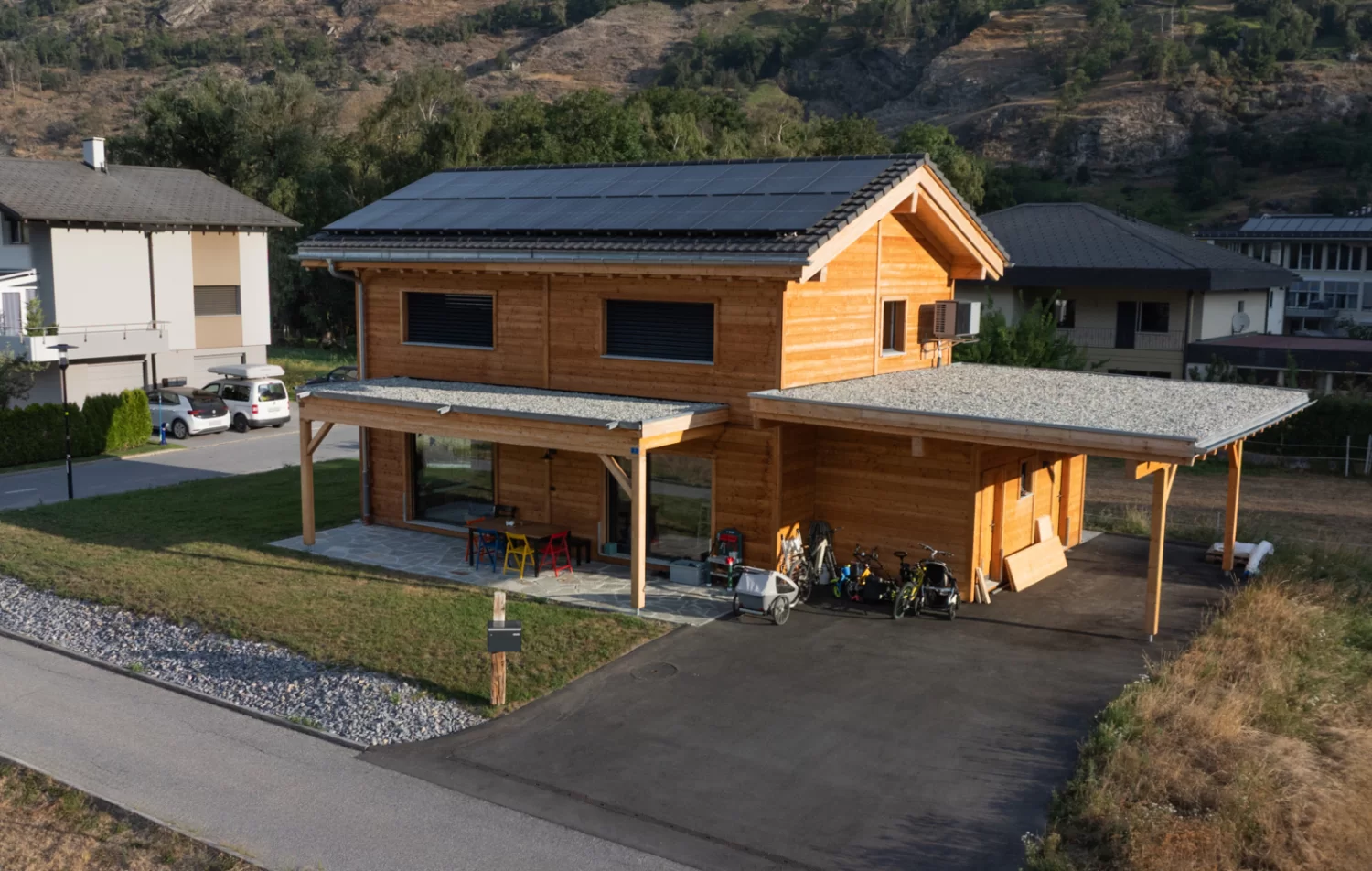 Wood bonds CO2 and only releases this again during combustion or decomposition. With a timber house, you are supporting this natural cycle.