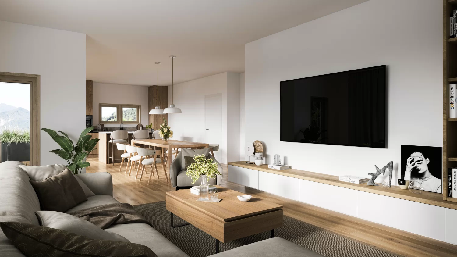 Les appartements sont vendus en propriété par étage. Pour le prix correspondant, tous les appartements seront aménagés selon un standard élevé. Les revêtements muraux et de sol, les appareils sanitaires, les détails de l'installation électrique, la cuisine, les escaliers, etc. seront réalisés selon vos souhaits. Pour le dépôt du permis de construire, nous avons procédé à une répartition des pièces qui peut être adaptée au choix par appartement. Le rez-de-chaussée est réalisé en construction massive, les étages supérieurs en éléments/systèmes. Pour une isolation phonique optimale entre les étages, tous les éléments de plafond sont remplis de gravillons de chaux. Cela génère des masses de plafond de plus de 600 kg/m2 et n'a rien à envier aux plafonds massifs.