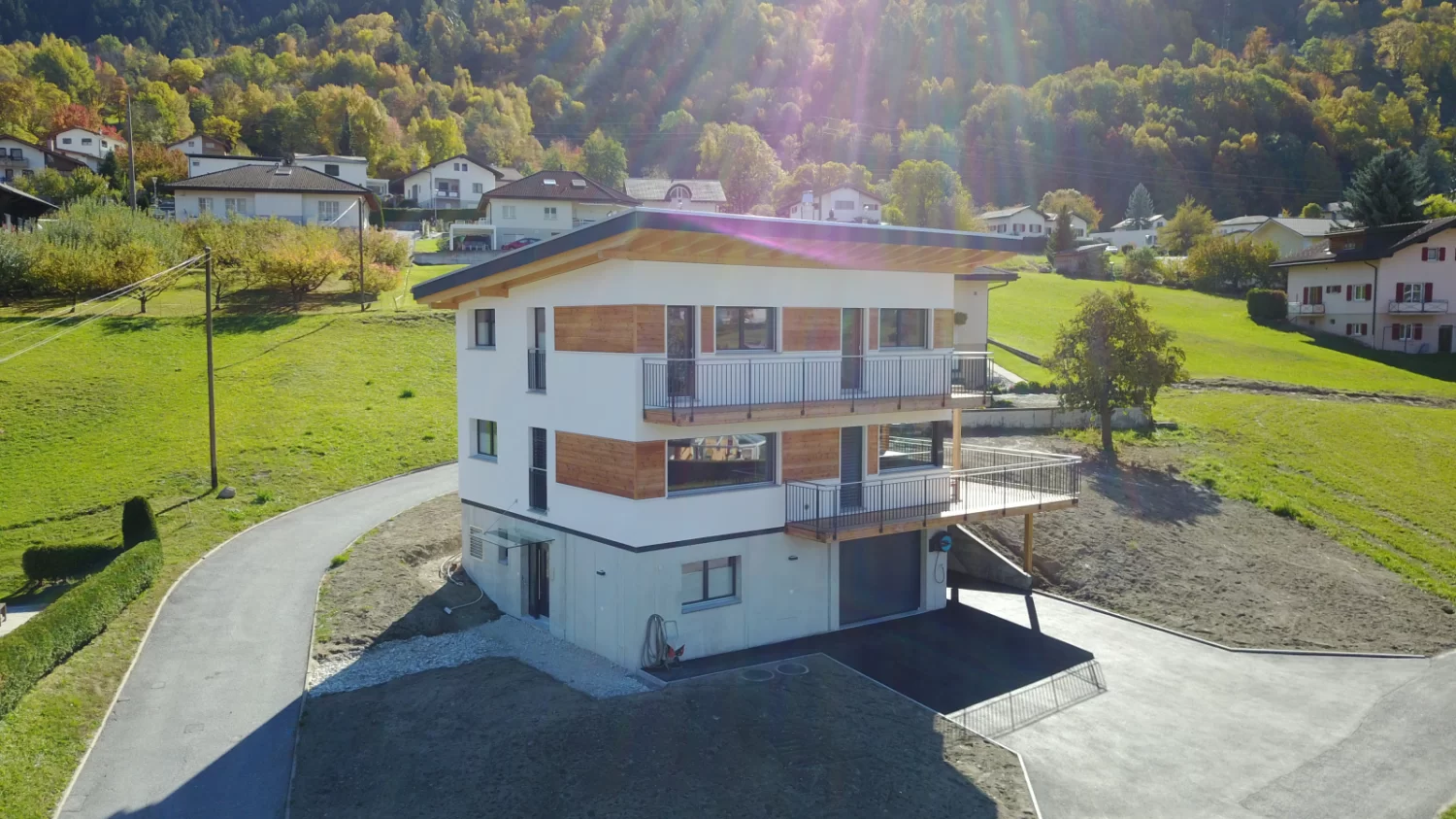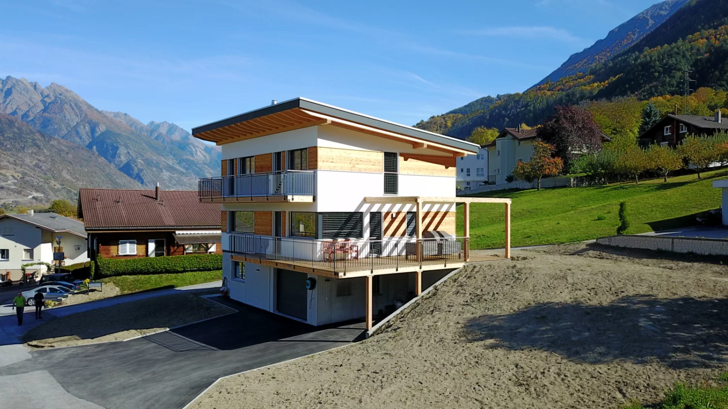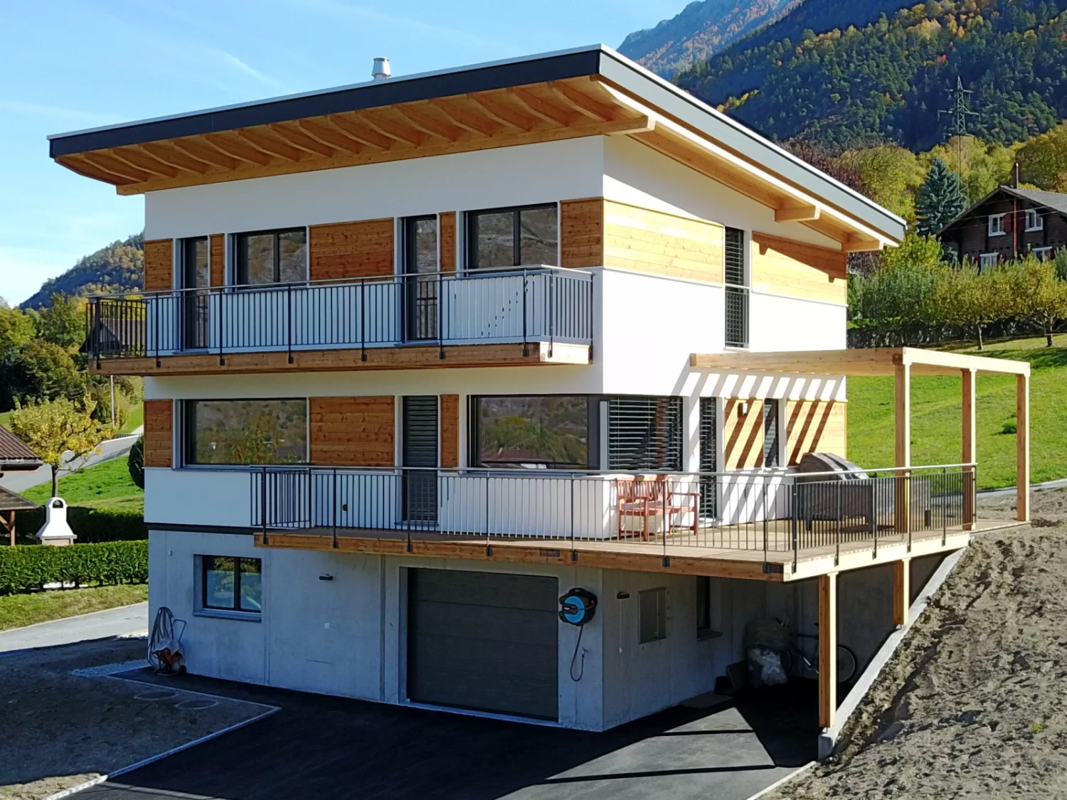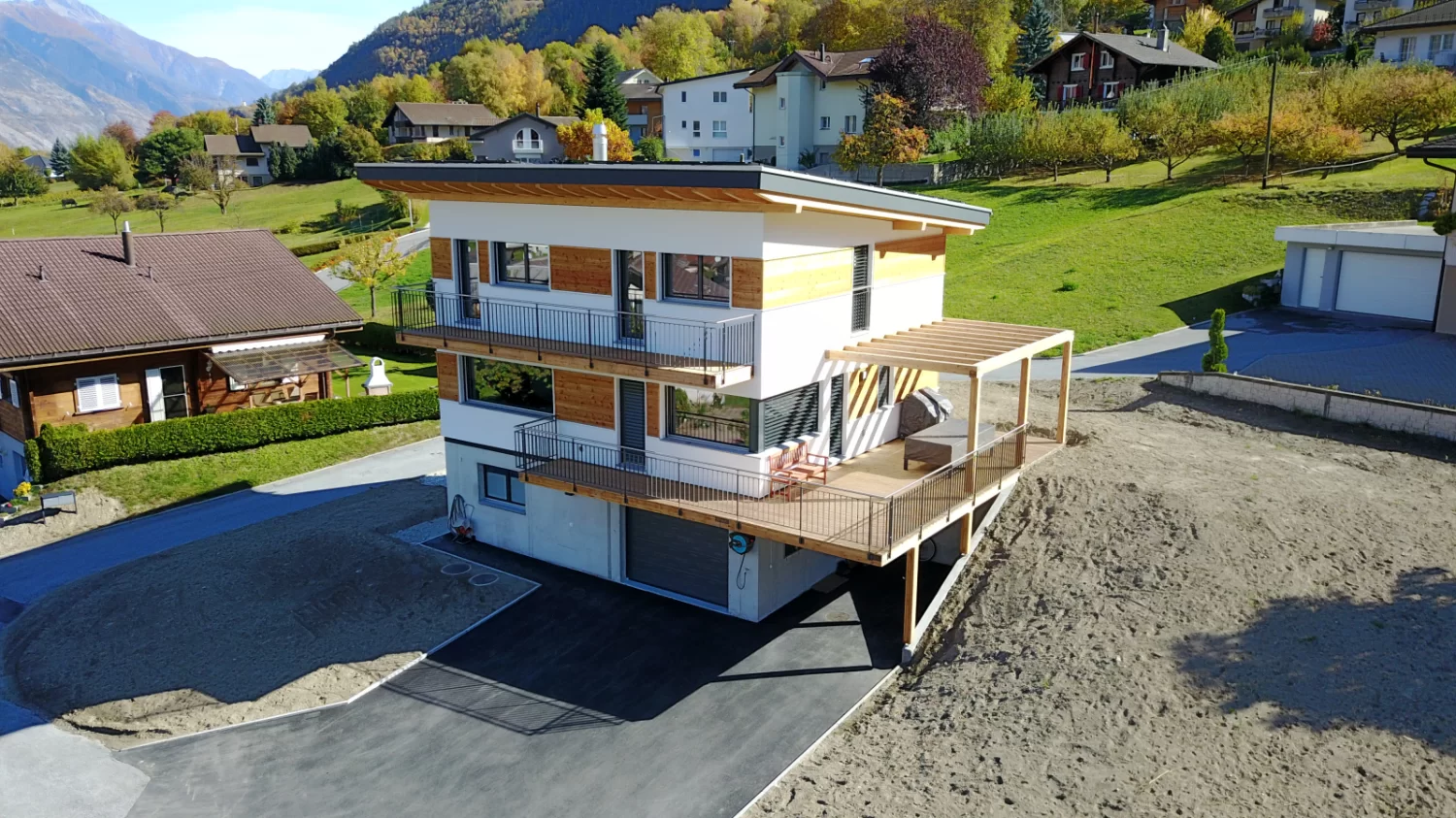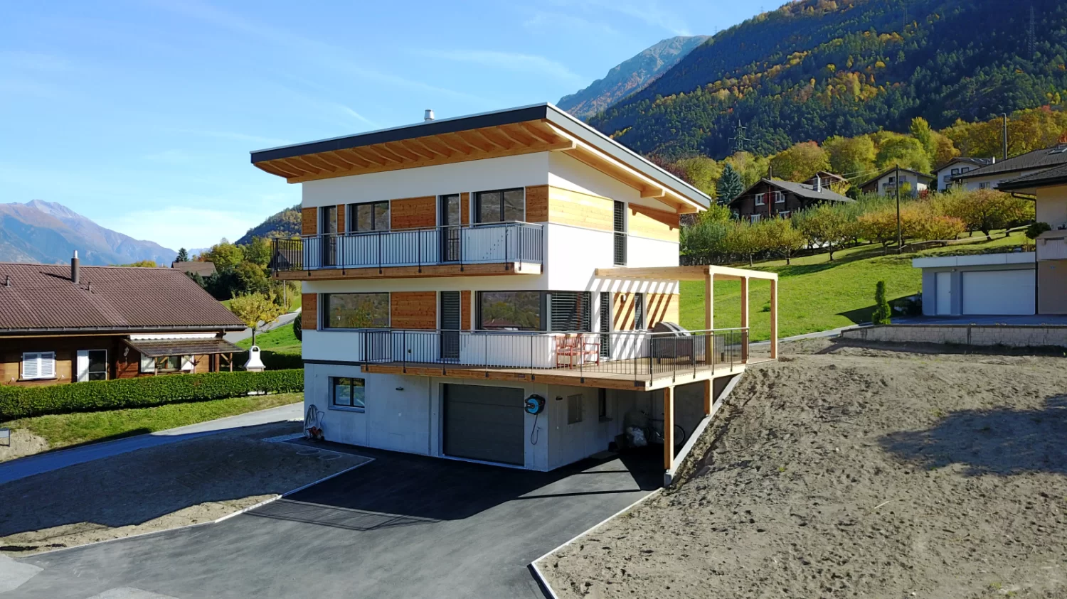 Maison individuelle à Agarn avec façade mixte et toit en appentis
