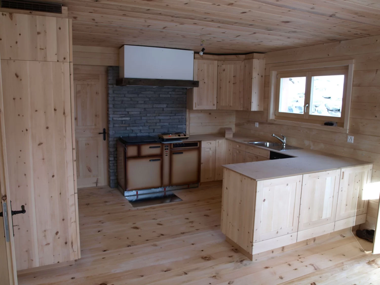 Maison individuelle en rondins à Zeneggen. La majorité des surfaces intérieures sont en bois.